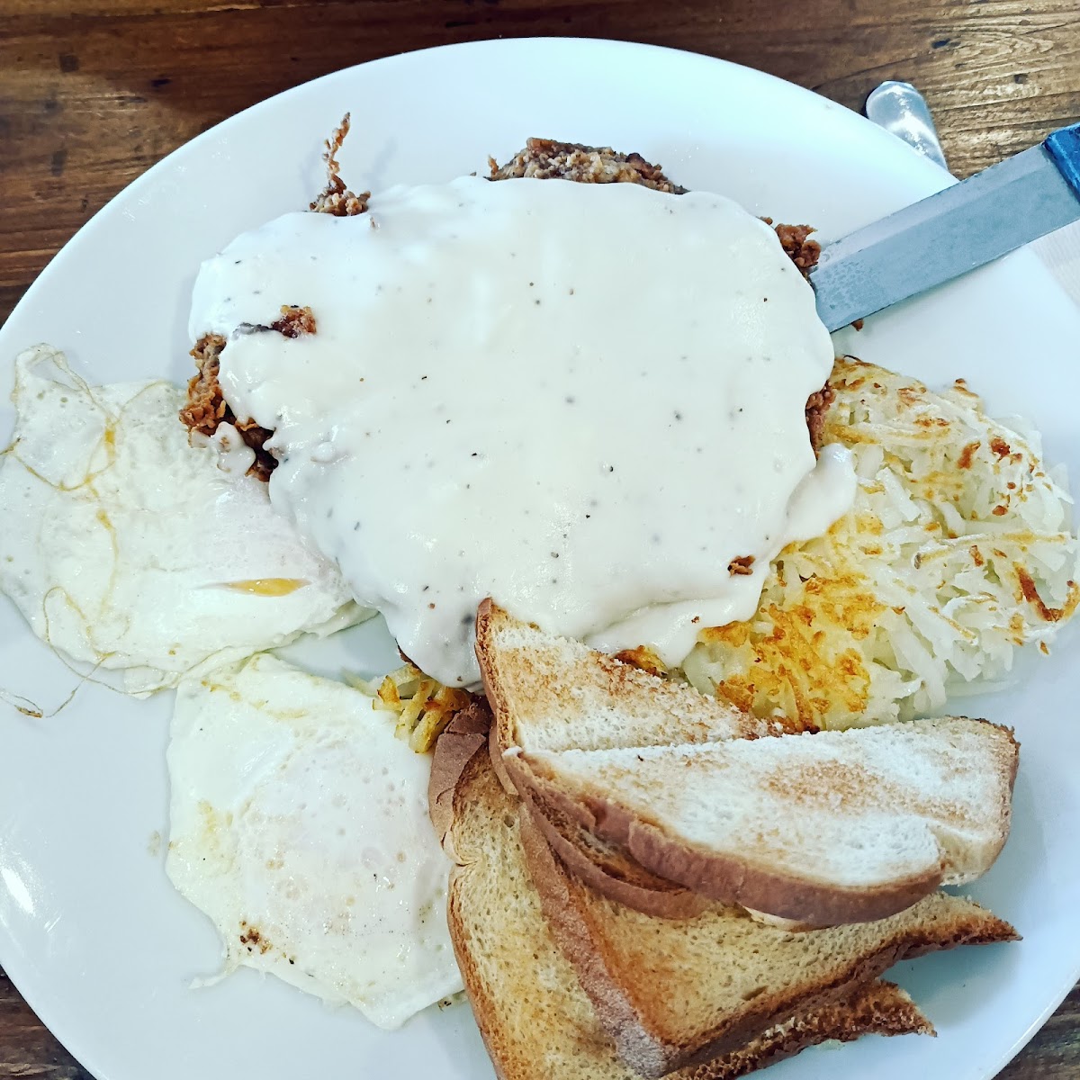 Crossroads Cafe is best known for its Chicken Fried Steak, a Texas classic that’s crispy on the outside and tender on the inside. It’s a must-try for any first-time visitor. For breakfast lovers, the Migas are a crowd-pleaser, bursting with flavor from scrambled eggs, tortillas, and a blend of spices. If you're craving something sweet, the Waffle and Chicken and Waffles are sure to hit the spot, combining crispy chicken with fluffy waffles for the perfect balance of savory and sweet.