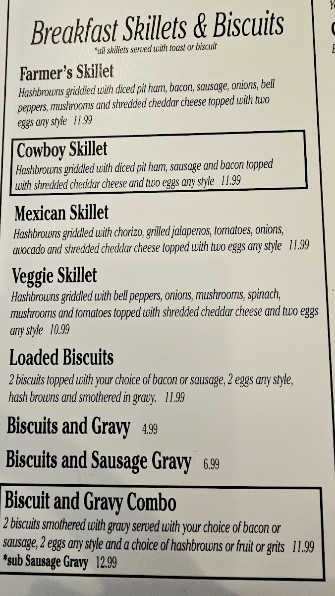 For fans of breakfast skillets, Crossroads Cafe offers a delicious array, including the Cowboy Skillet, Mexican Skillet, and Veggie Skillet, all perfect for an energizing start to the day. Don't miss their Biscuit and Gravy Combo for a true Southern breakfast experience.